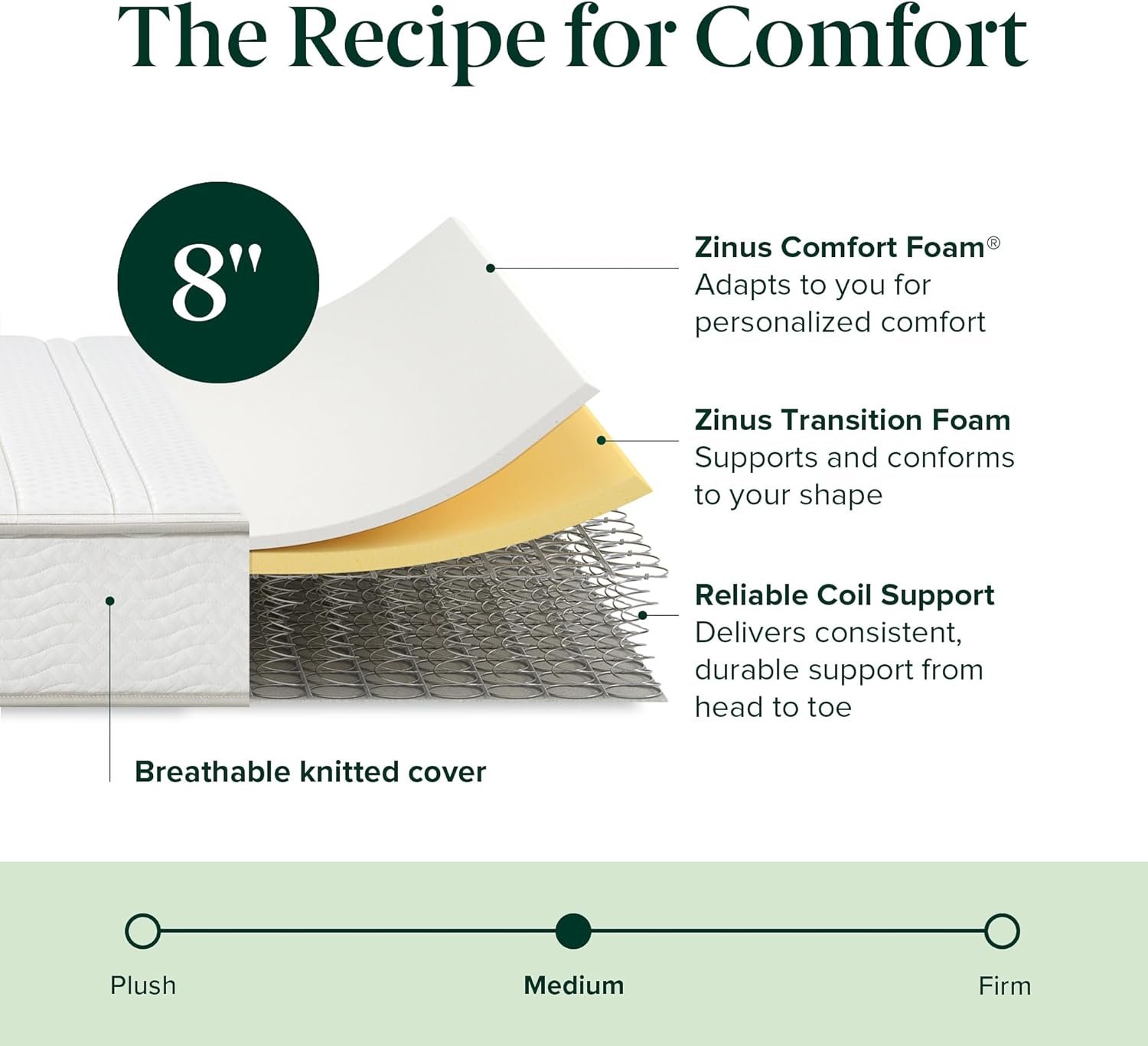 The Zinus 8 Inch Foam and Spring Hybrid Mattress delivers balanced comfort and reliable support. Its durable steel coils combine with responsive foam layers to offer medium-firm stability and pressure relief for a restful night’s sleep. Made with CertiPUR-US® and OEKO-TEX® certified materials, it’s safe, breathable, and free from harmful substances. Conveniently shipped in a compact box for easy setup, this mattress expands quickly and stays supportive for years. Backed by a 10-year warranty, the Zinus Hybrid is the perfect mix of comfort, quality, and value.