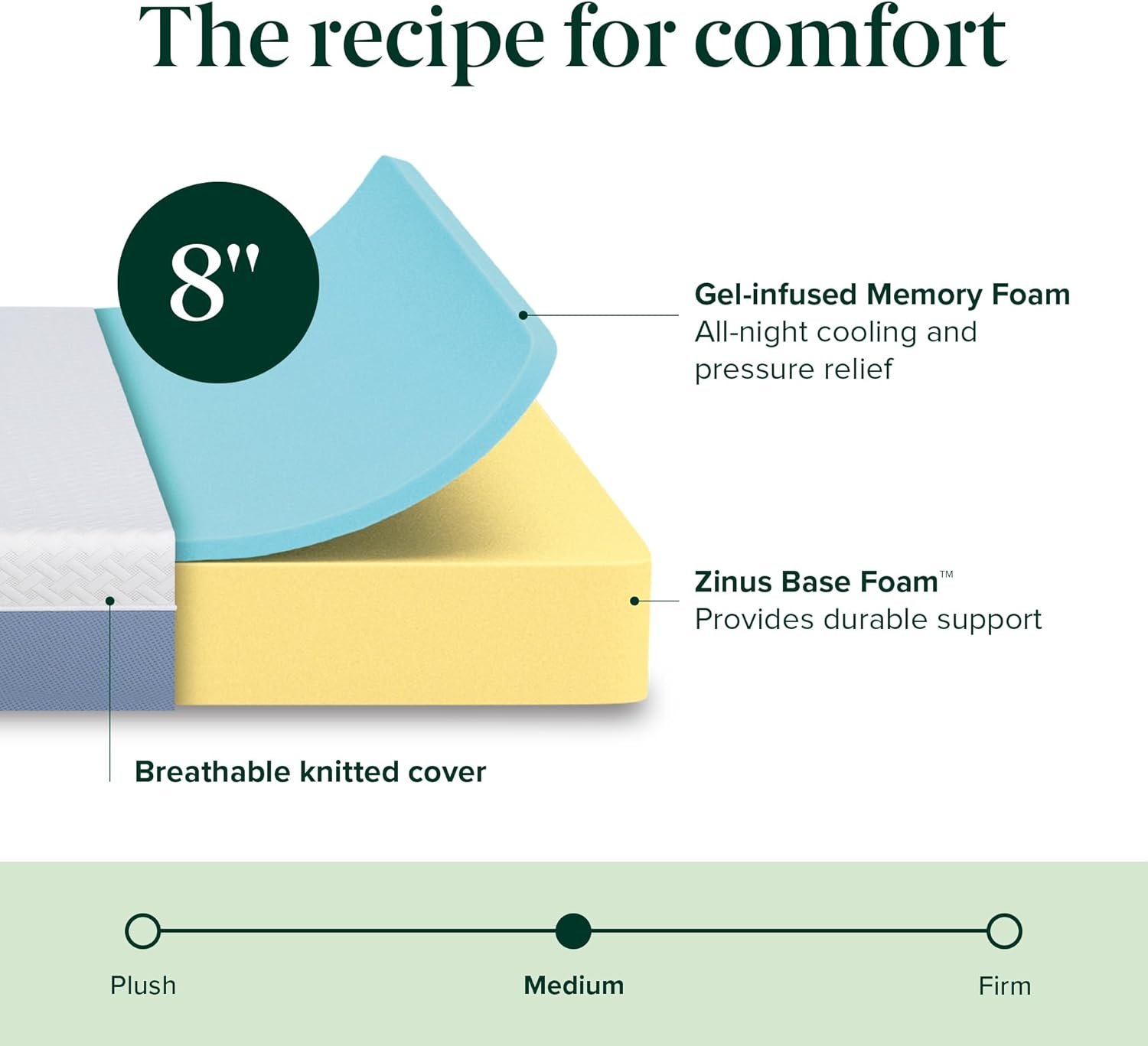 ZINUS 8 Inch Twin Cooling Essential Memory Foam Mattress [NewVersion], Fiberglass Free, Medium Feel, Breathable Cooling Layers, Certified Safe Materials